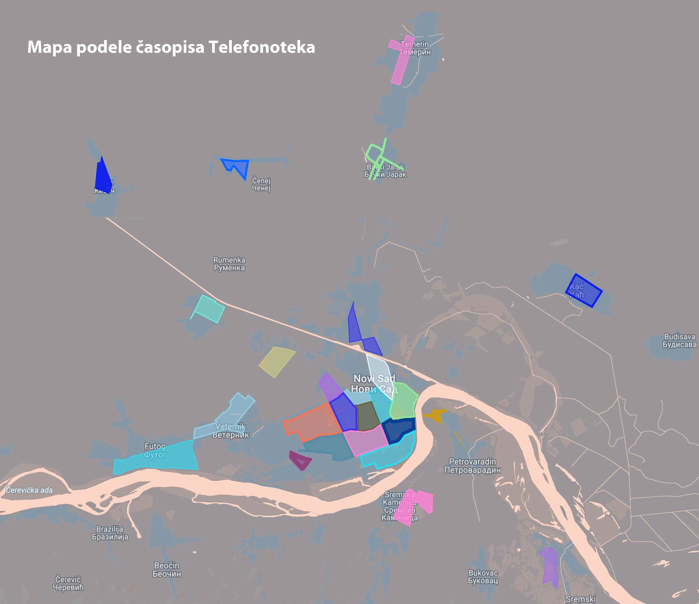 Na ovoj stranici možete videti gde se u Novom Sadu dostavlja časopis Telefonoteka. Takođe, na mapi su prikazana i okolna mesta gde se distribuira časopis. Ako ne dobijate Telefonoteku, Vaš primerak možete preuzeti u redakciji koja se nalazi u Čika Stevinoj ulici broj 10 u Novom sadu. Ukoliko ste primetili da mapom distribucije nije obuhvaćena Vaša ulica ili deo grada, kontaktirajte naš call centar za detaljnije informacije na 021 / 510 – 666.