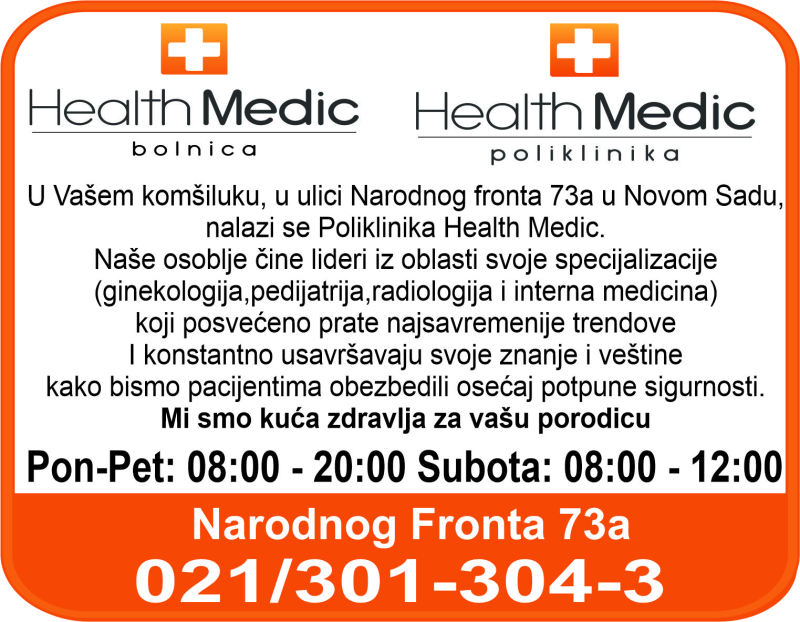 U Vašem komšiluku, u ulici Narodnog fronta 73a u Novom Sadu, nalazi se Poliklinika Health Medic.